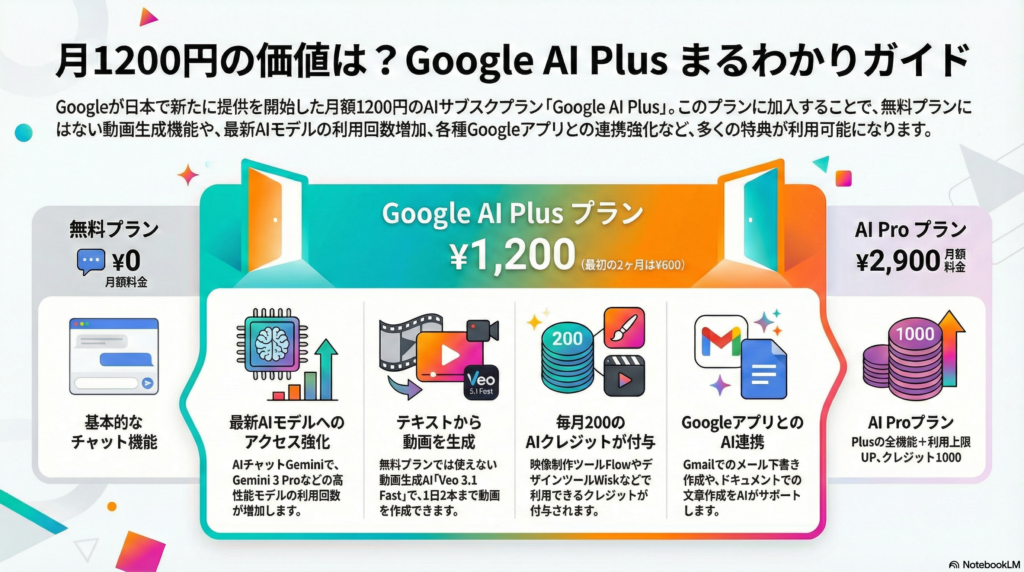 この記事では、2025年1月に日本で提供が開始されたGoogleの新しいAIサブスクリプションプラン「Google AI Plus」について、その特徴や具体的な活用メリット、料金体系などを解説します。